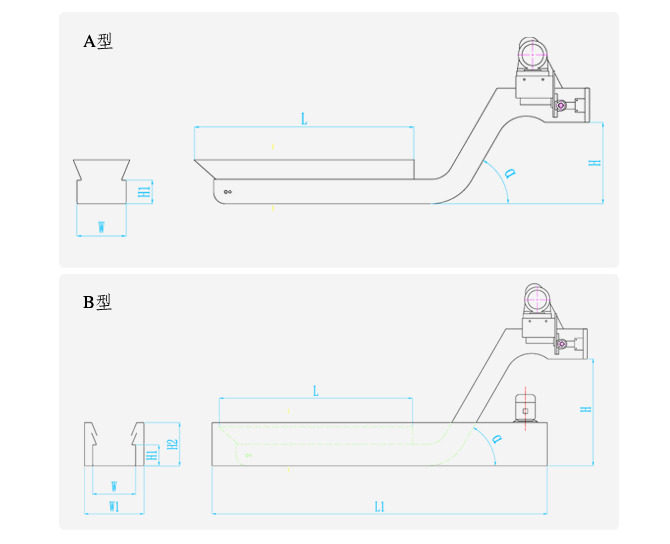 ZDGB系列刮板排屑裝置由殼體、減速機、驅動鏈條、傳動鏈條及刮板等部分組成。該裝置是利用特制的滾輪鏈條傳動,用刮屑板將切屑沿排屑器底部刮送到指定位置。該裝置可提供充足的選用范圍,刮屑板的高度、分布間距可隨機設計;通過輸送速度、有效輸送寬度的變化組合,可以調整控制機器的實際輸送量。